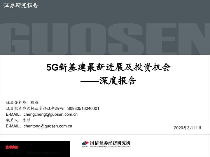 【国信证券】【20200311】通信行业深度报告:5G新基建最新进展及投资机会-117页
