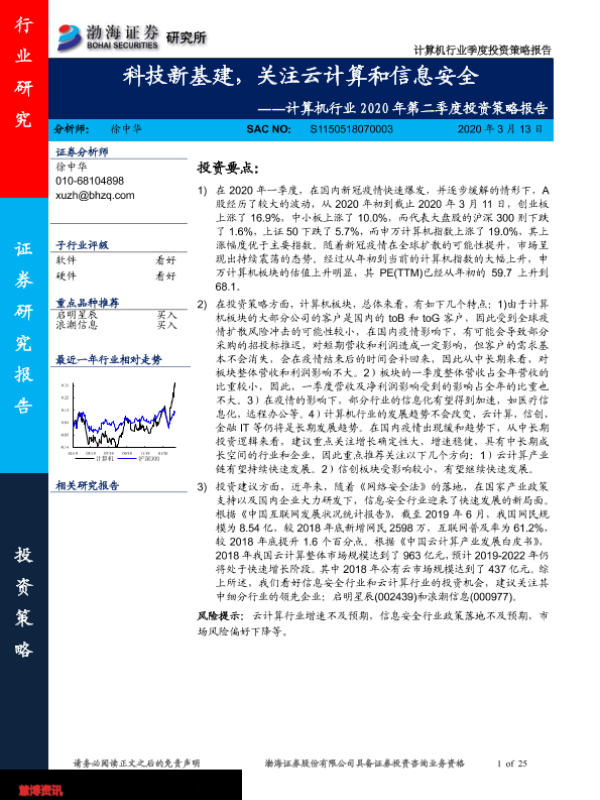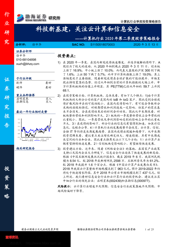 【渤海证券】【20200313】计算机行业2020年第二季度投资策略报告:科技新基建,关注云计算和信息安全-25页