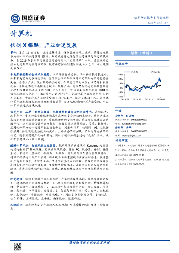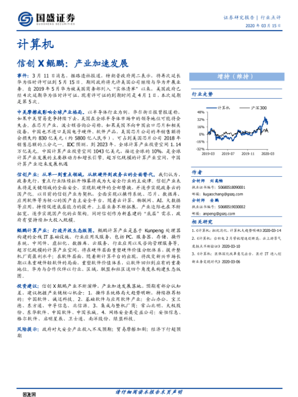 【国盛证券】【20200315】计算机行业点评:信创X鲲鹏:产业加速发展-13页