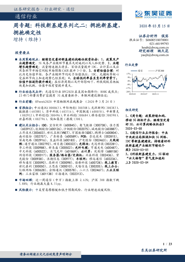 【东吴证券】【20200315】20200315-东吴证券-通信行业周专题:科技新基建系列之二:拥抱新基建,拥抱确定性-23页