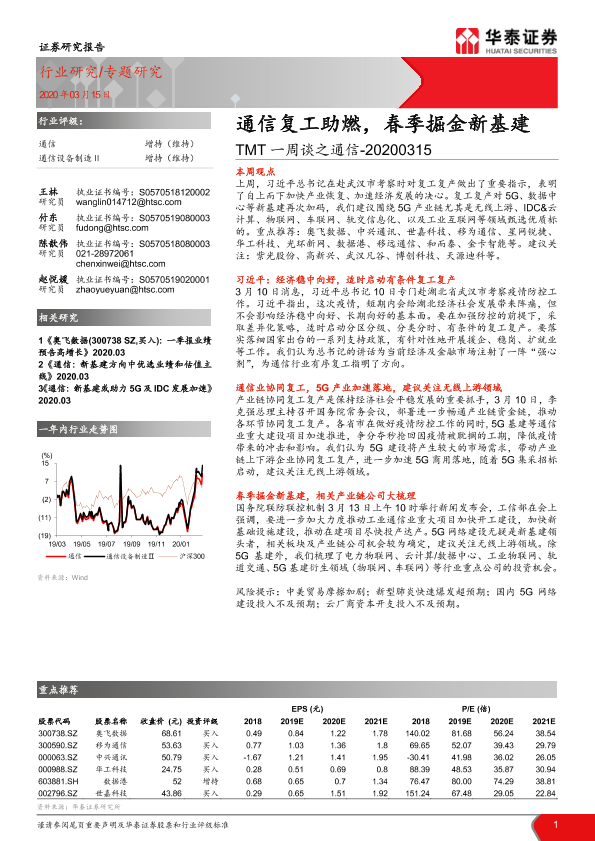 【华泰证券】【20200315】TMT一周谈之通信:通信复工助燃,春季掘金新基建-17页