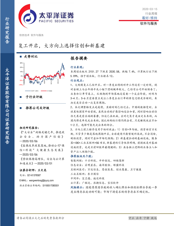 【太平洋证券】【20200315】20200315-太平洋-软件与服务行业周报:复工开启,大方向上选择信创和新基建-4页