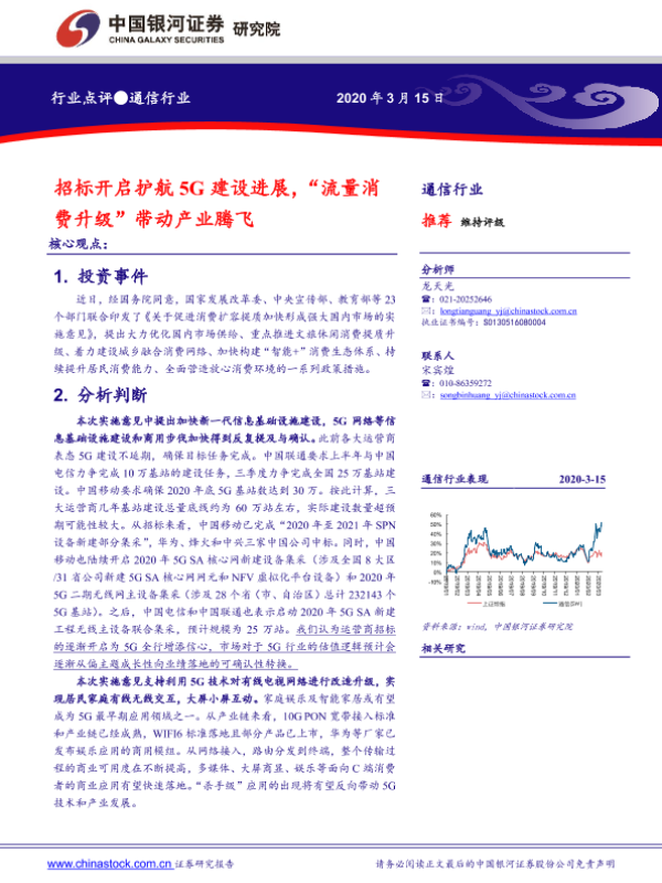 【银河证券】【20200315】通信行业:招标开启护航5G建设进展,“流量消费升级”带动产业腾飞-4页