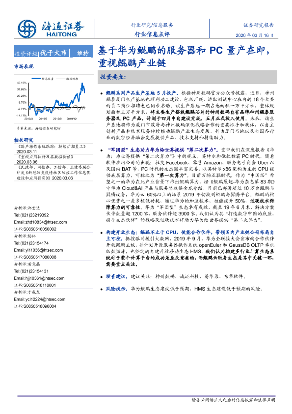 【海通证券】【20200316】20200316-海通证券-信息服务行业信息点评:基于华为鲲鹏的服务器和PC量产在即,重视鲲鹏产业链-2页