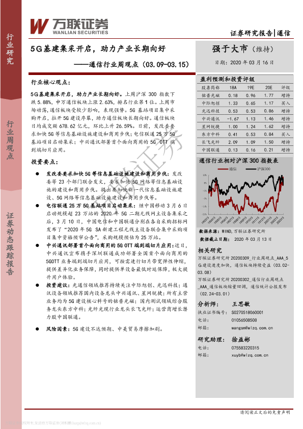 【万联证券】【20200316】20200316-万联证券-通信行业周观点:5G基建集采开启,助力产业长期向好-12页