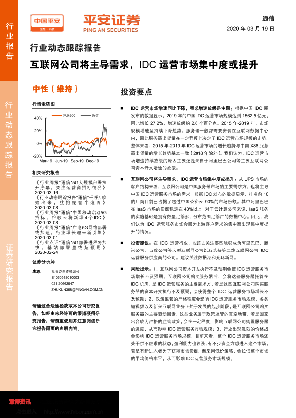 【平安证券】【20200319】通信行业动态跟踪报告:互联网公司将主导需求,IDC运营市场集中度或提升-6页