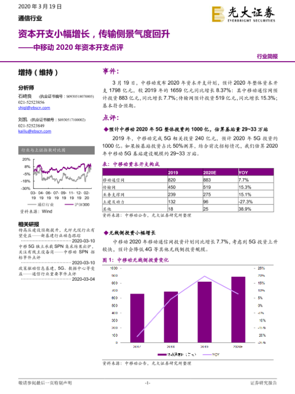 【光大证券】【20200319】通信行业:中移动2020年资本开支点评:资本开支小幅增长,传输侧景气度回升-3页