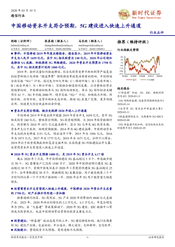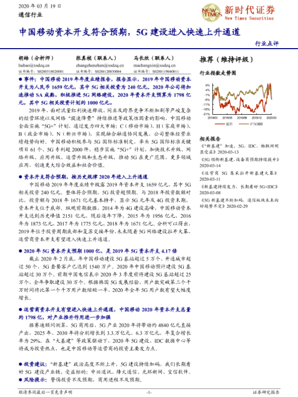 【新时代证券】【20200319】20200319-新时代证券-通信行业点评:中国移动资本开支符合预期,5G建设进入快速上升通道-3页