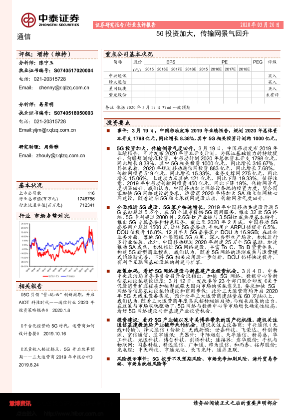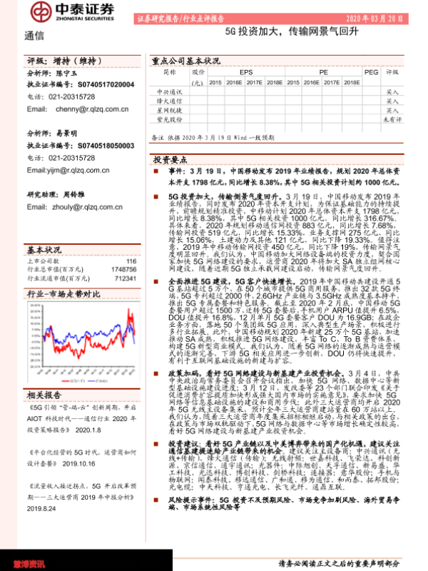 【中泰证券】【20200320】通信:5G投资加大,传输网景气回升-2页