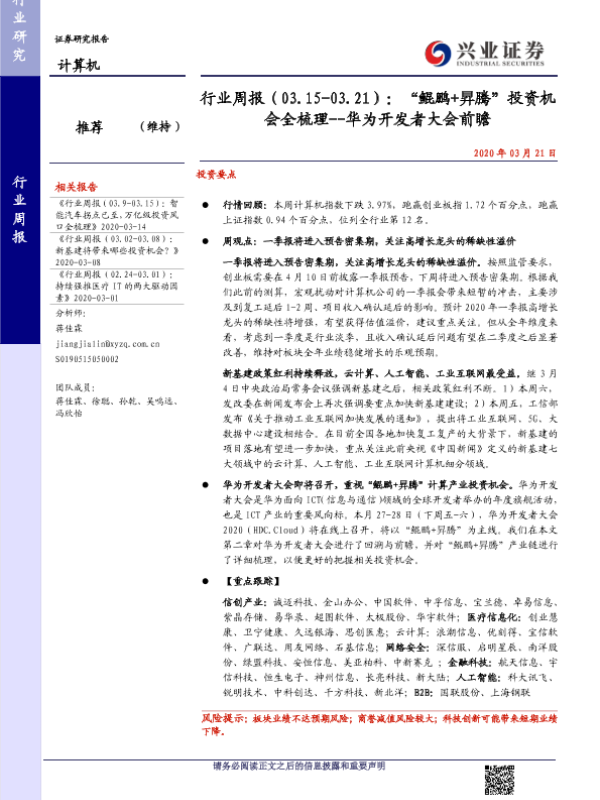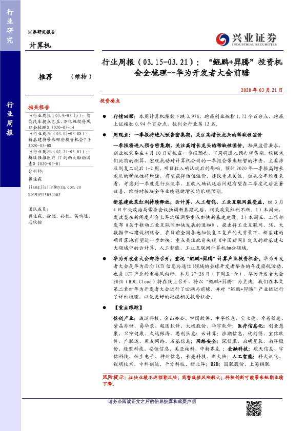 【兴业证券】【20200321】20200321-兴业证券-计算机行业周报:“鲲鹏+昇腾”投资机会全梳理--华为开发者大会前瞻-25页
