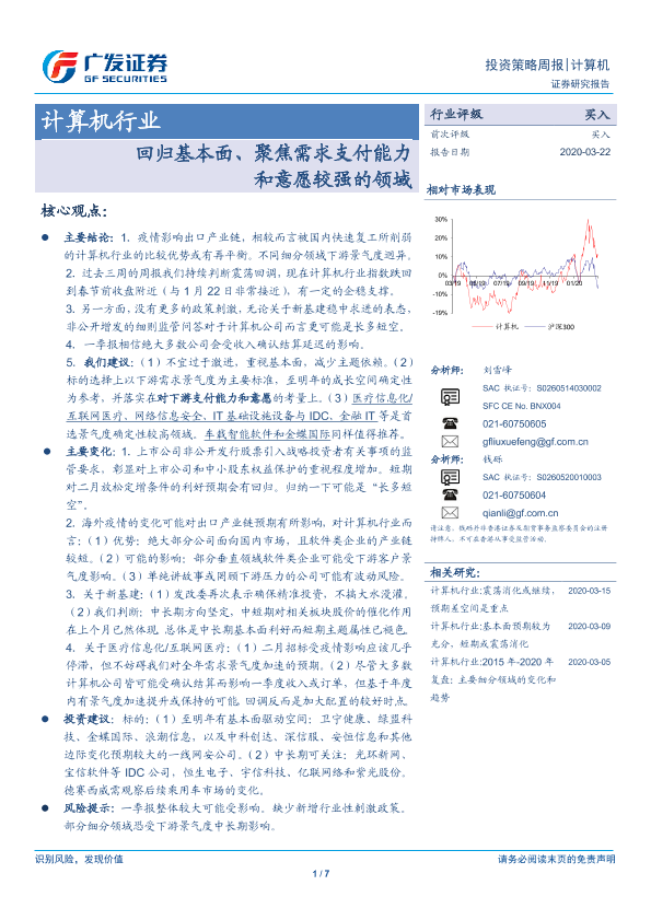 【广发证券】【20200322】20200322-广发证券-计算机行业投资策略周报:回归基本面、聚焦需求支付能力和意愿较强的领域-7页