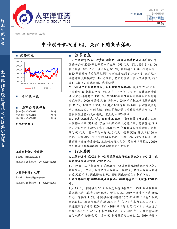 【太平洋证券】【20200322】20200322-太平洋-通信行业周报:中移动千亿投资5G,关注下周集采落地-13页