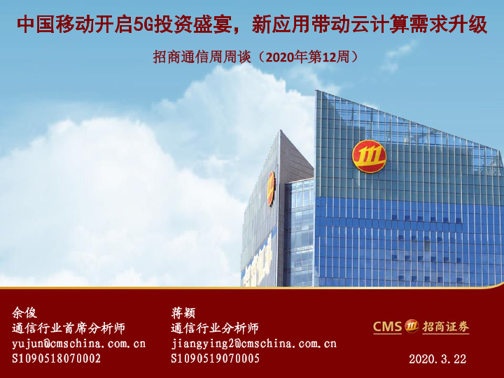 【海通证券】【20200322】招商通信周周谈(2020年第12周):中国移动开启5G投资盛宴,新应用带动云计算需求升级-55页