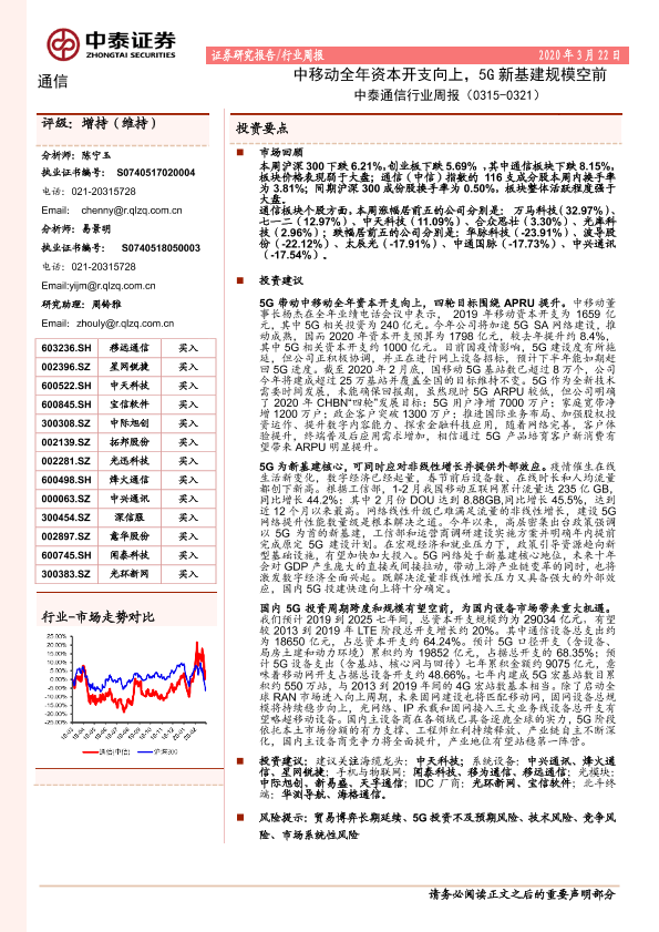 【中泰证券】【20200322】中泰通信行业周报:中移动全年资本开支向上,5G新基建规模空前-16页