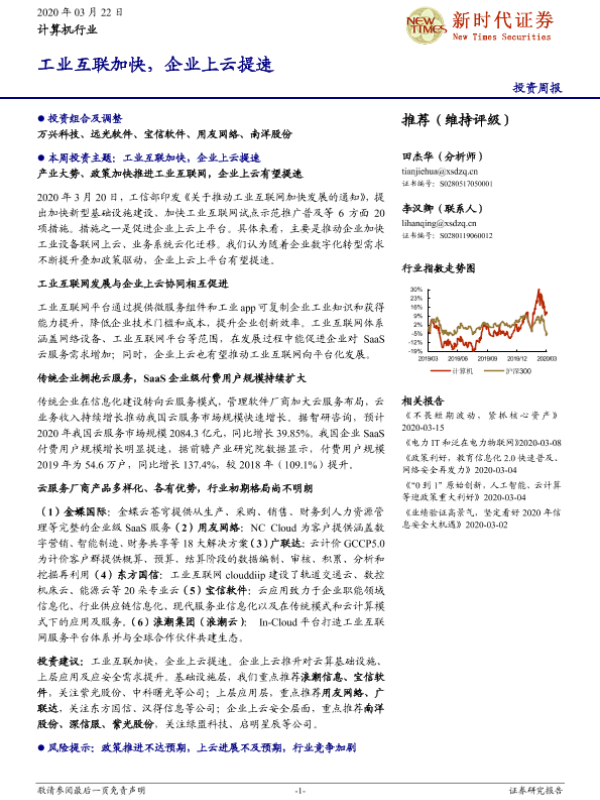 【新时代证券】【20200322】计算机行业:工业互联加快,企业上云提速-32页