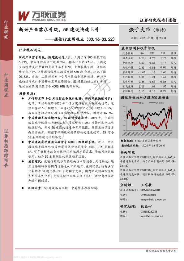 【万联证券】【20200323】通信行业周观点:新兴产业需求升级,5G建设快速上升-12页