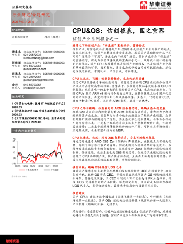 【华泰证券】【20200325】计算机软硬件专题研究:信创产业系列报告之一-CPU&OS:信创根基,国之重器-36页
