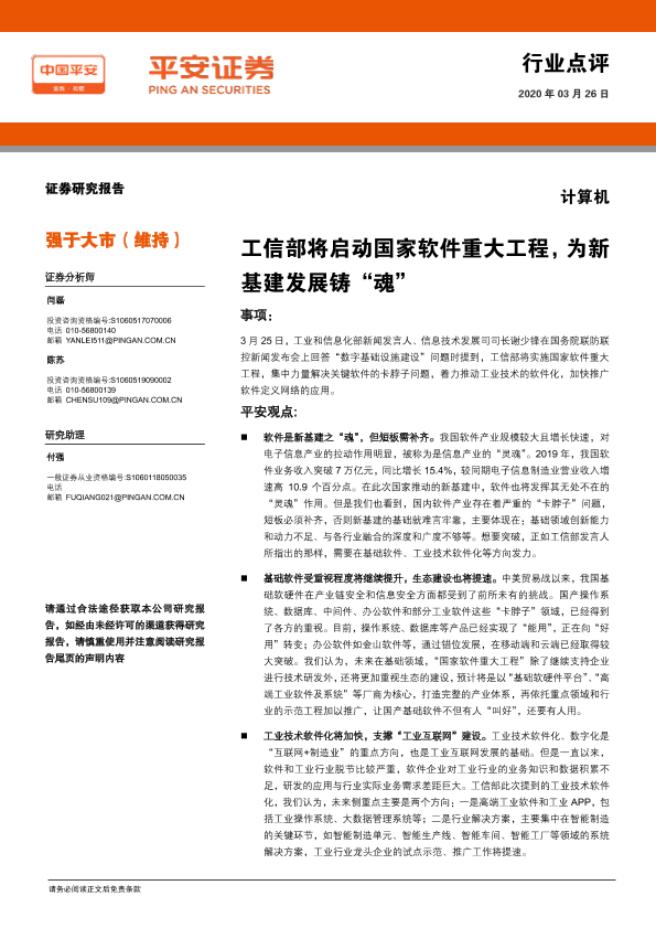 【平安证券】【20200326】计算机行业点评:工信部将启动国家软件重大工程,为新基建发展铸“魂”-3页
