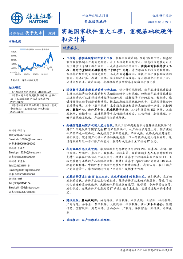 【海通证券】【20200327】信息服务行业信息点评:实施国家软件重大工程,重视基础软硬件和云计算-2页