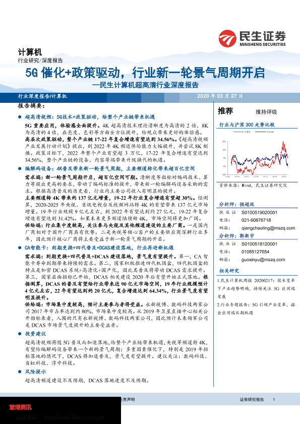 【民生证券】【20200327】民生计算机超高清行业深度报告:5G催化+政策驱动,行业新一轮景气周期开启-32页
