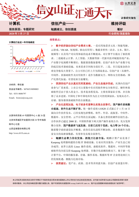 【山西证券】【20200327】计算机行业深度报告:信创产业——鲲鹏凌云,信创提速-16页