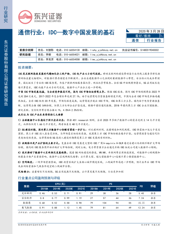 【东兴证券】【20200328】通信行业:IDC—数字中国发展的基石-18页