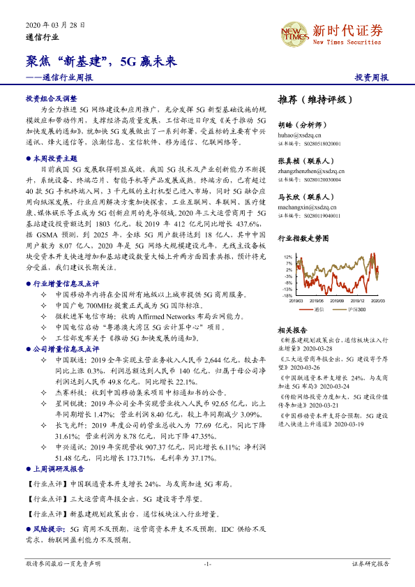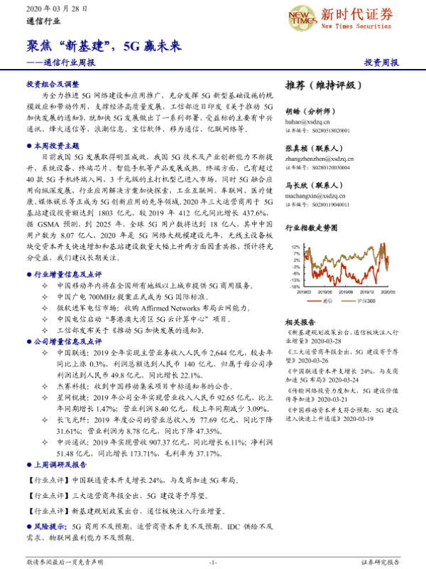 【新时代证券】【20200328】通信行业周报:聚焦“新基建”,5G赢未来-16页