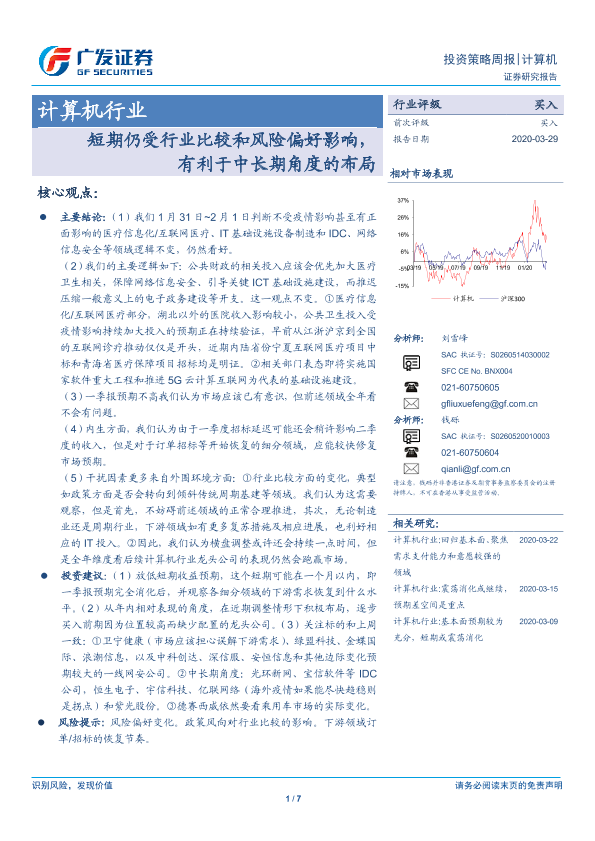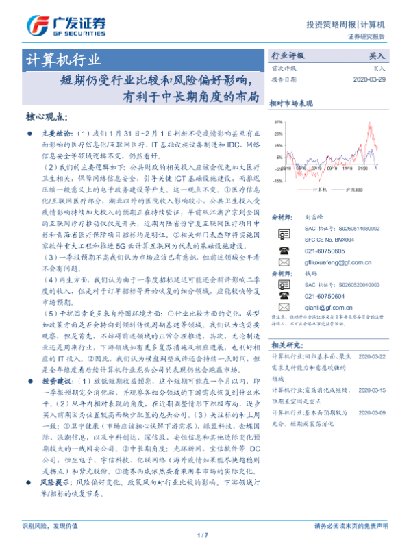 【广发证券】【20200329】计算机行业:短期仍受行业比较和风险偏好影响,有利于中长期角度的布局-7页