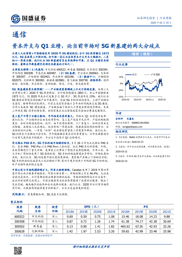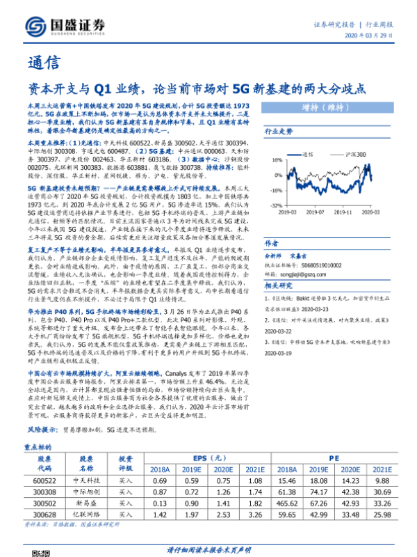 【国盛证券】【20200329】通信行业周报:资本开支与Q1业绩,论当前市场对5G新基建的两大分歧点-13页