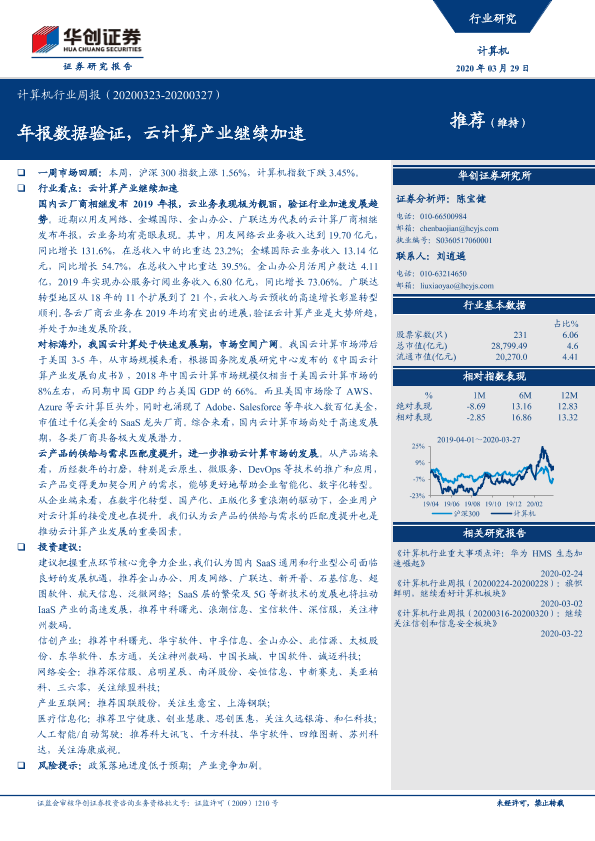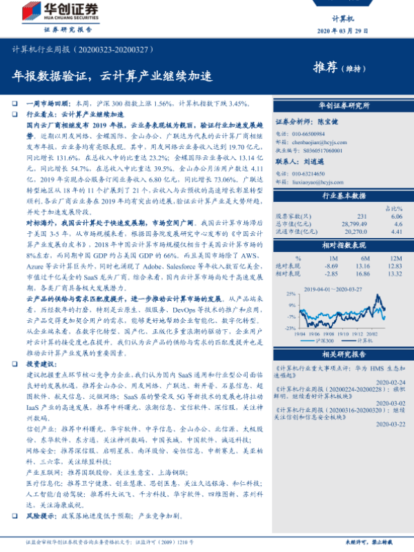 【华创证券】【20200329】20200329-华创证券-计算机行业周报:年报数据验证,云计算产业继续加速-19页
