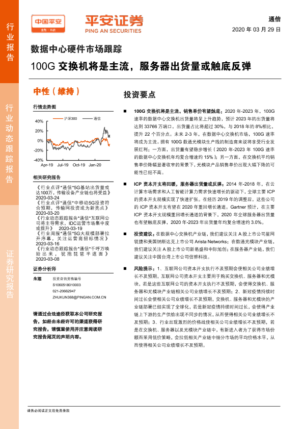 【平安证券】【20200329】通信:数据中心硬件市场跟踪-100G交换机将是主流,服务器出货量或触底反弹-7页