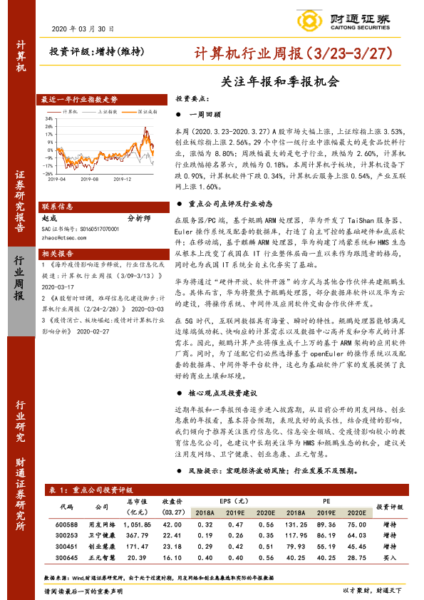 【财通证券】【20200330】20200330-财通证券-计算机行业周报:关注年报和季报机会-10页