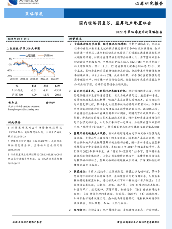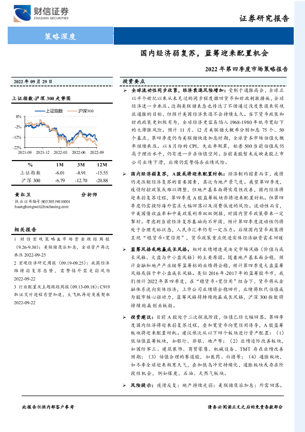 【财信证券】【20220929】2022年第四季度市场策略报告:国内经济弱复苏,蓝筹迎来配置机会-30页