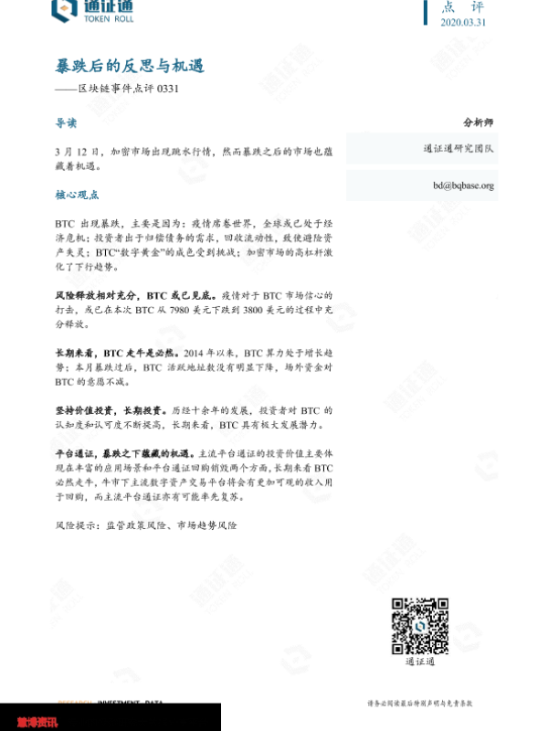 【通证通研究院】【20200331】区块链事件点评:暴跌后的反思与机遇-7页