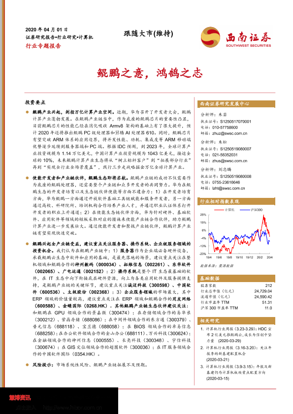 【西南证券】【20200401】20200401-西南证券-计算机行业专题报告:鲲鹏之意,鸿鹄之志-20页