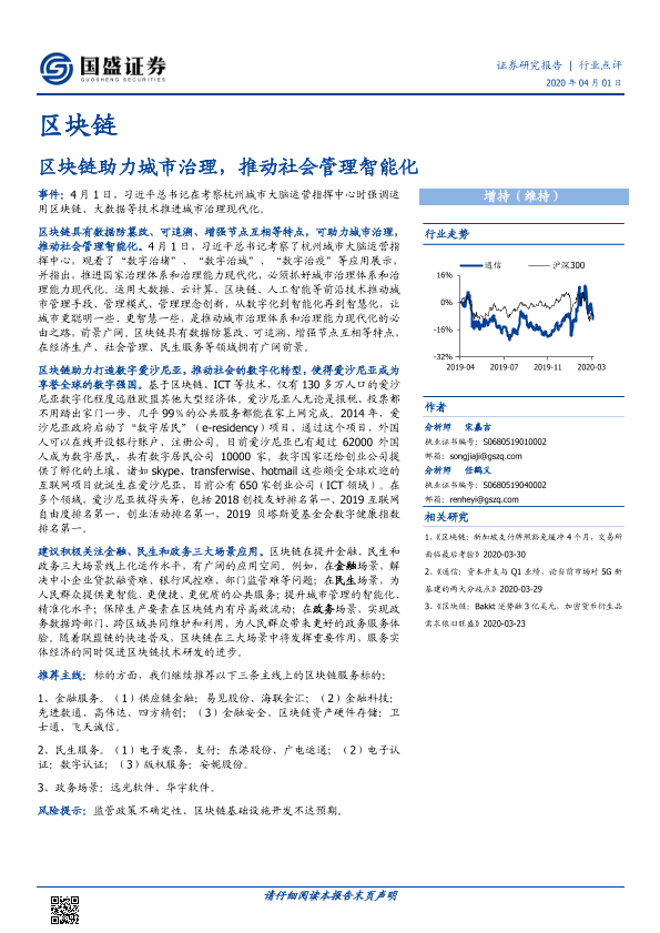 【国盛证券】【20200401】区块链:区块链助力城市治理,推动社会管理智能化-5页