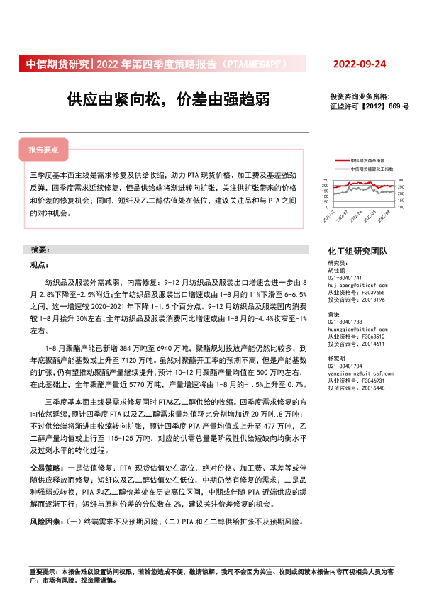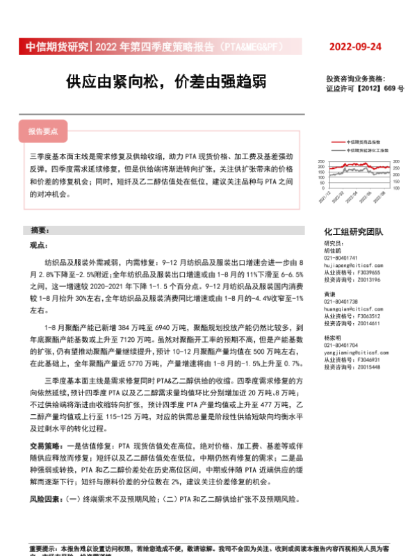 【中信期货】【20220924】2022年第四季度策略报告(PTA&MEG&PF):供应由紧向松,价差由强趋弱-16页