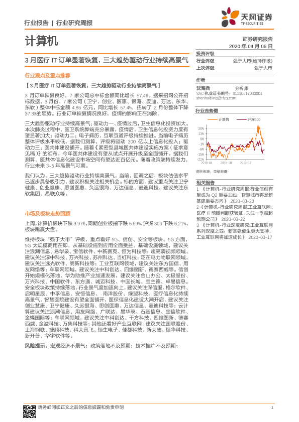 【天风证券】【20200405】20200405-天风证券-计算机行业研究周报:3月医疗IT订单显著恢复,三大趋势驱动行业持续高景气-8页