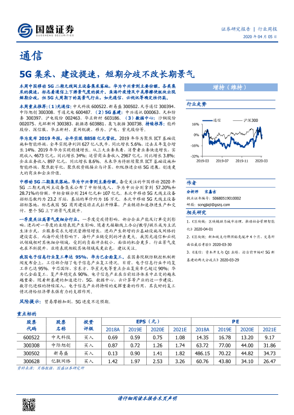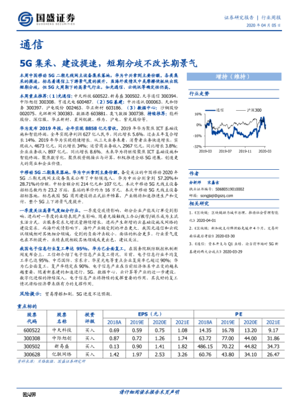 【国盛证券】【20200405】通信行业周报:5G集采、建设提速,短期分歧不改长期景气-14页