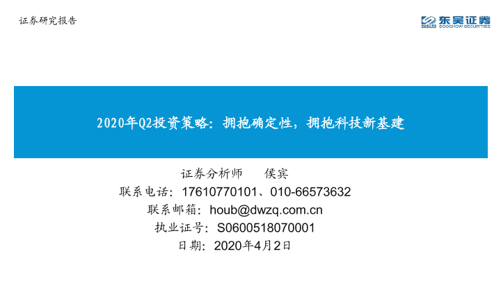 2020年Q2 投资策略 确定性 科技新基建 通信行业