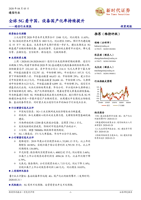 【新时代证券】【20200405】全球5G看中国,设备国产化率持续提升-17页