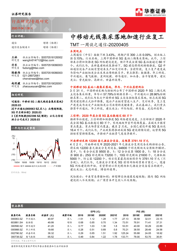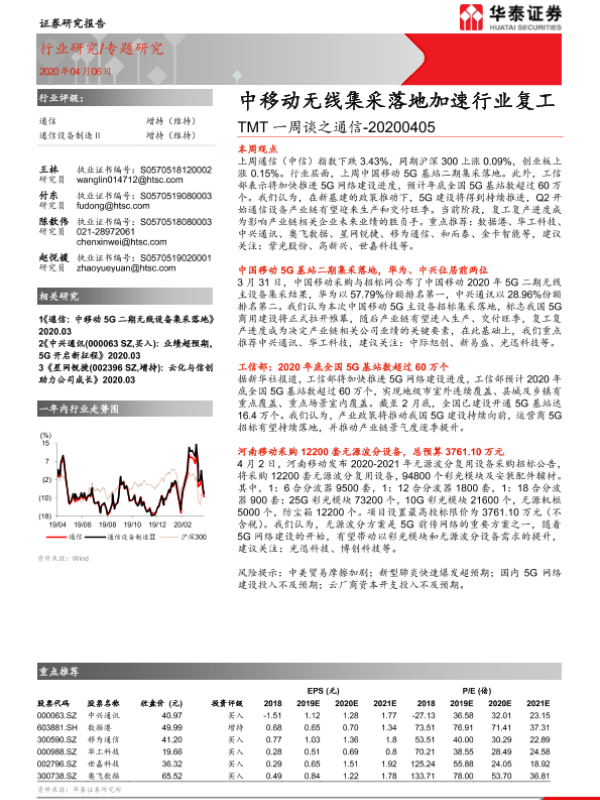 【华泰证券】【20200406】TMT一周谈之通信:中移动无线集采落地加速行业复工-12页
