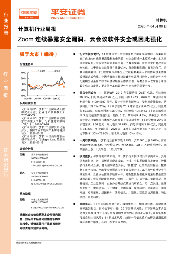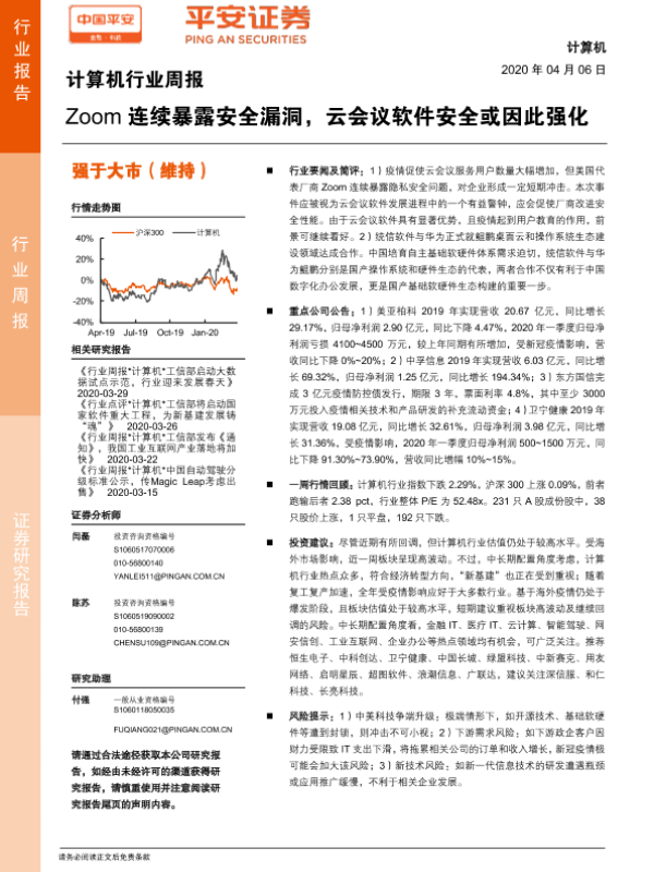 【平安证券】【20200406】计算机行业周报:Zoom连续暴露安全漏洞,云会议软件安全或因此强化-6页