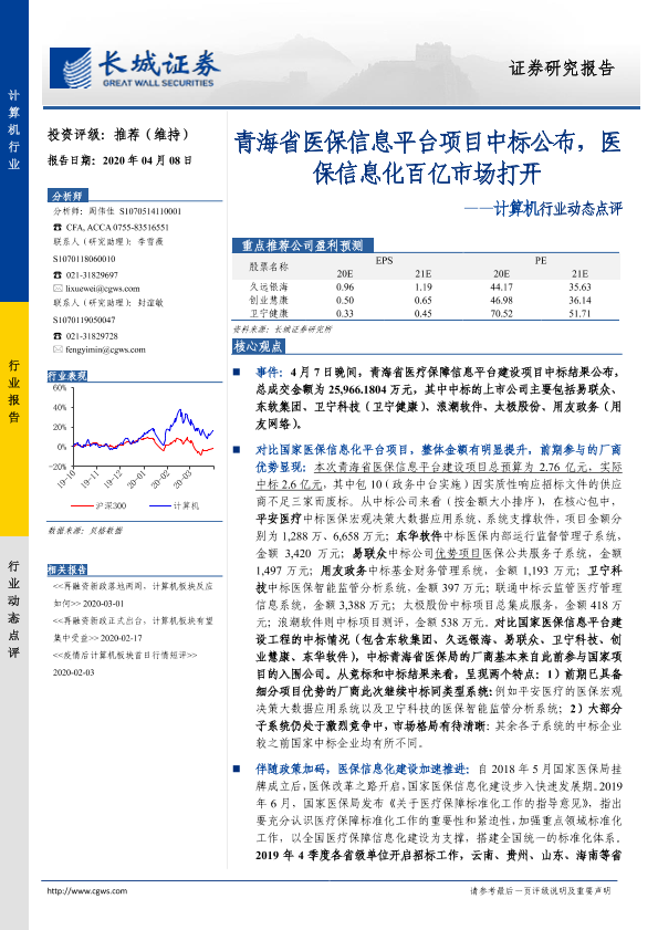 【长城证券】【20200408】20200408-长城证券-计算机行业动态点评:青海省医保信息平台项目中标公布,医保信息化百亿市场打开-3页