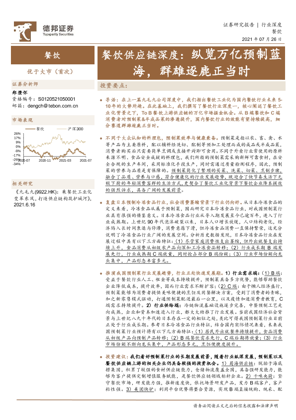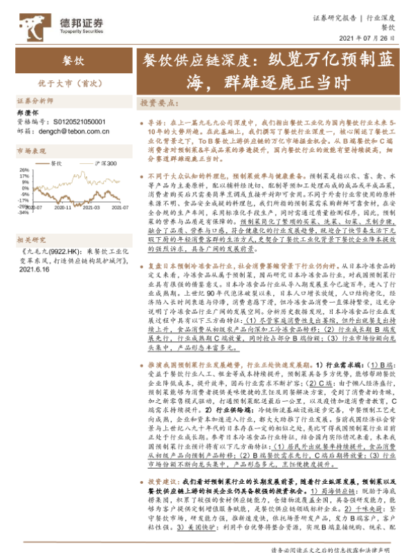 【德邦证券】【20210726】餐饮行业深度:餐饮供应链深度:纵览万亿预制蓝海,群雄逐鹿正当时-36页