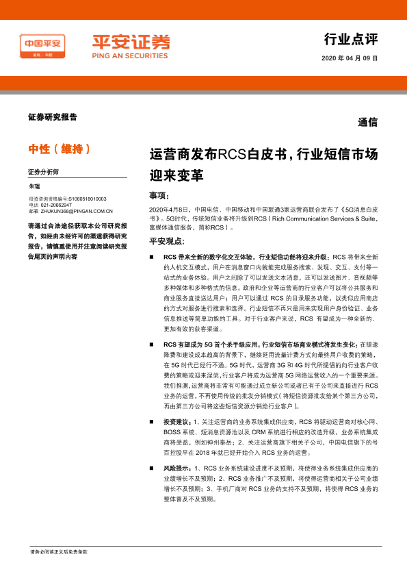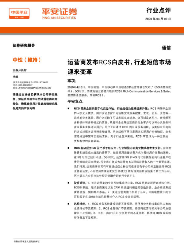 【平安证券】【20200409】通信:运营商发布RCS白皮书,行业短信市场迎来变革-2页
