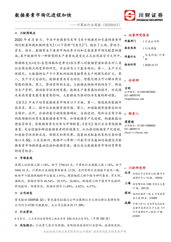 【川财证券】【20200412】计算机行业周报:数据要素市场化进程加快-10页
