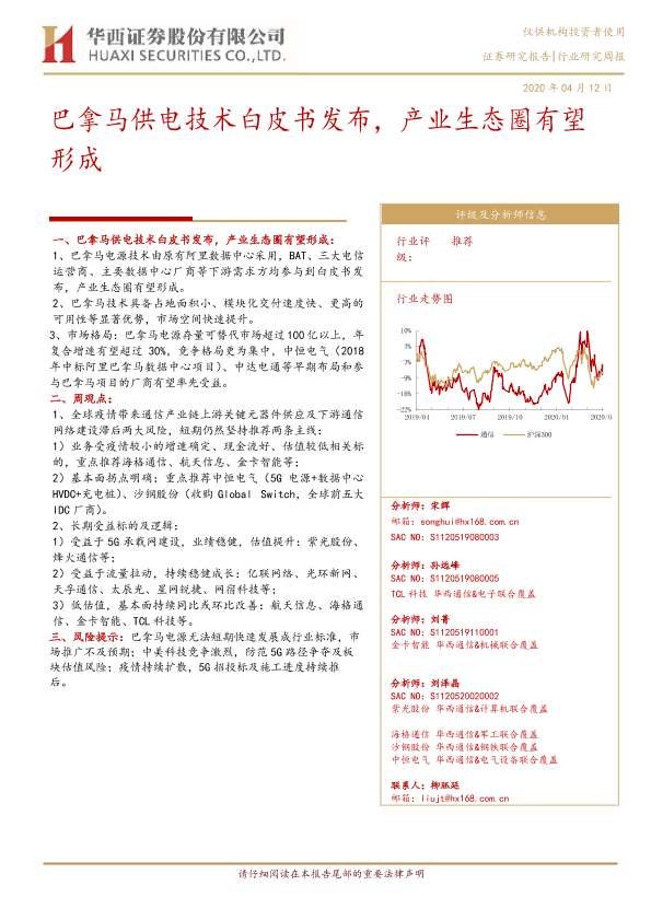 【华西证券】【20200412】20200412-华西证券-通信行业研究周报:巴拿马供电技术白皮书发布,产业生态圈有望形成-9页
