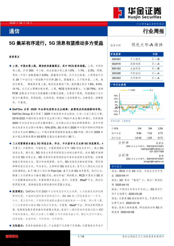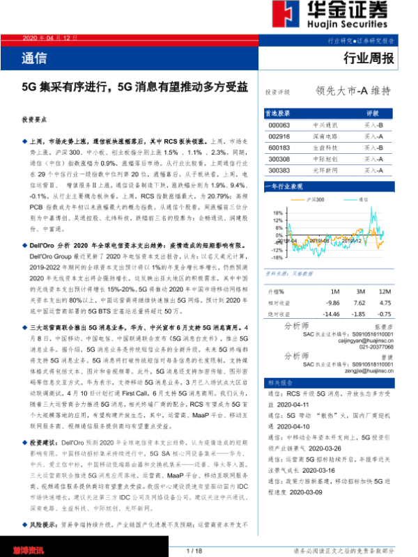 【华金证券】【20200412】通信行业周报:5G集采有序进行,5G消息有望推动多方受益-18页