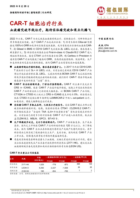 【招银国际】【20220928】CAR-T细胞治疗行业:血液瘤突破早线治疗,期待实体瘤突破和商业化腾飞-59页
